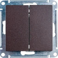Проходной двухклавишный выключатель на 10А. Серия FP204. Белый цвет. Для управления двумя группами освещения из двух точек.