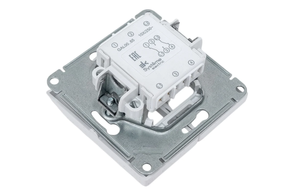 Переключатель двухклавишный ArtGallery, схема 6/2, 10AX, механизм, цвет белый
