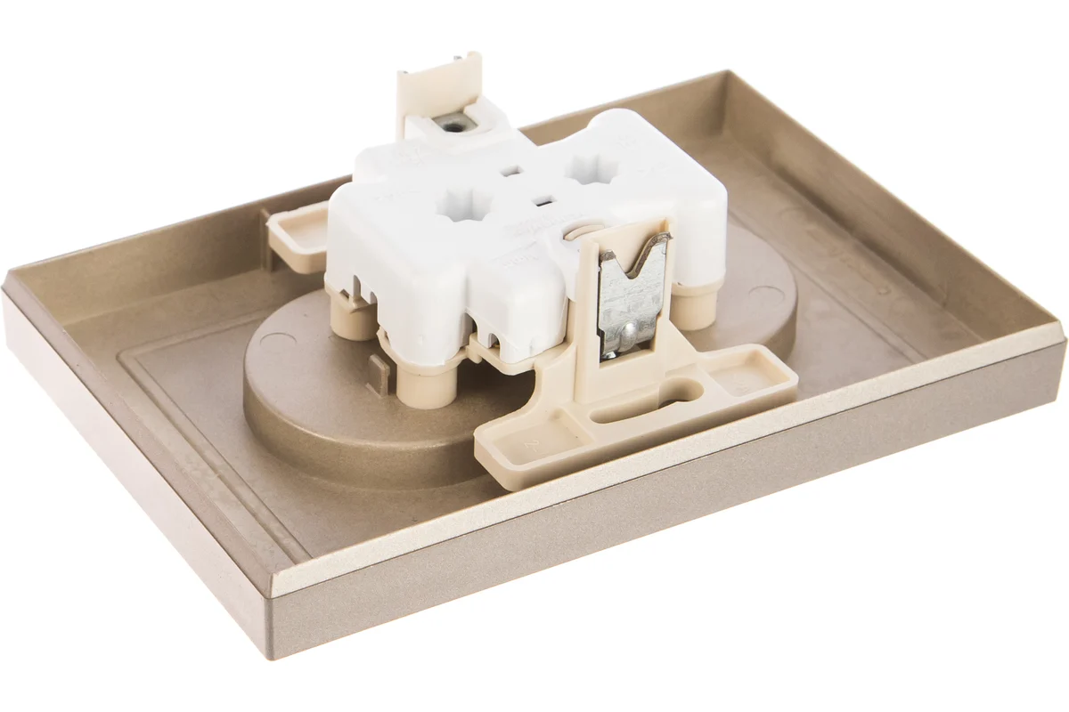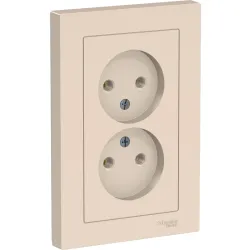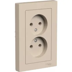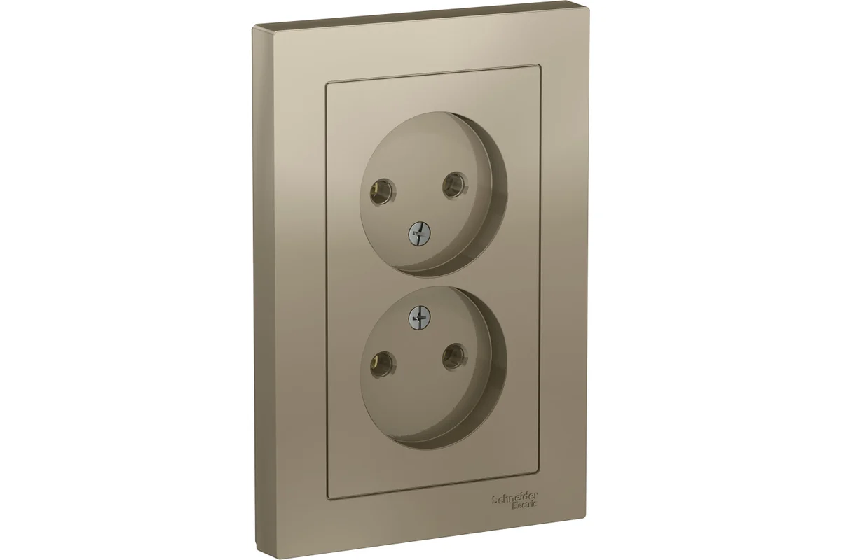 Розетка двойная AtlasDesign 16А, без заземления, в сборе, цвет шампань