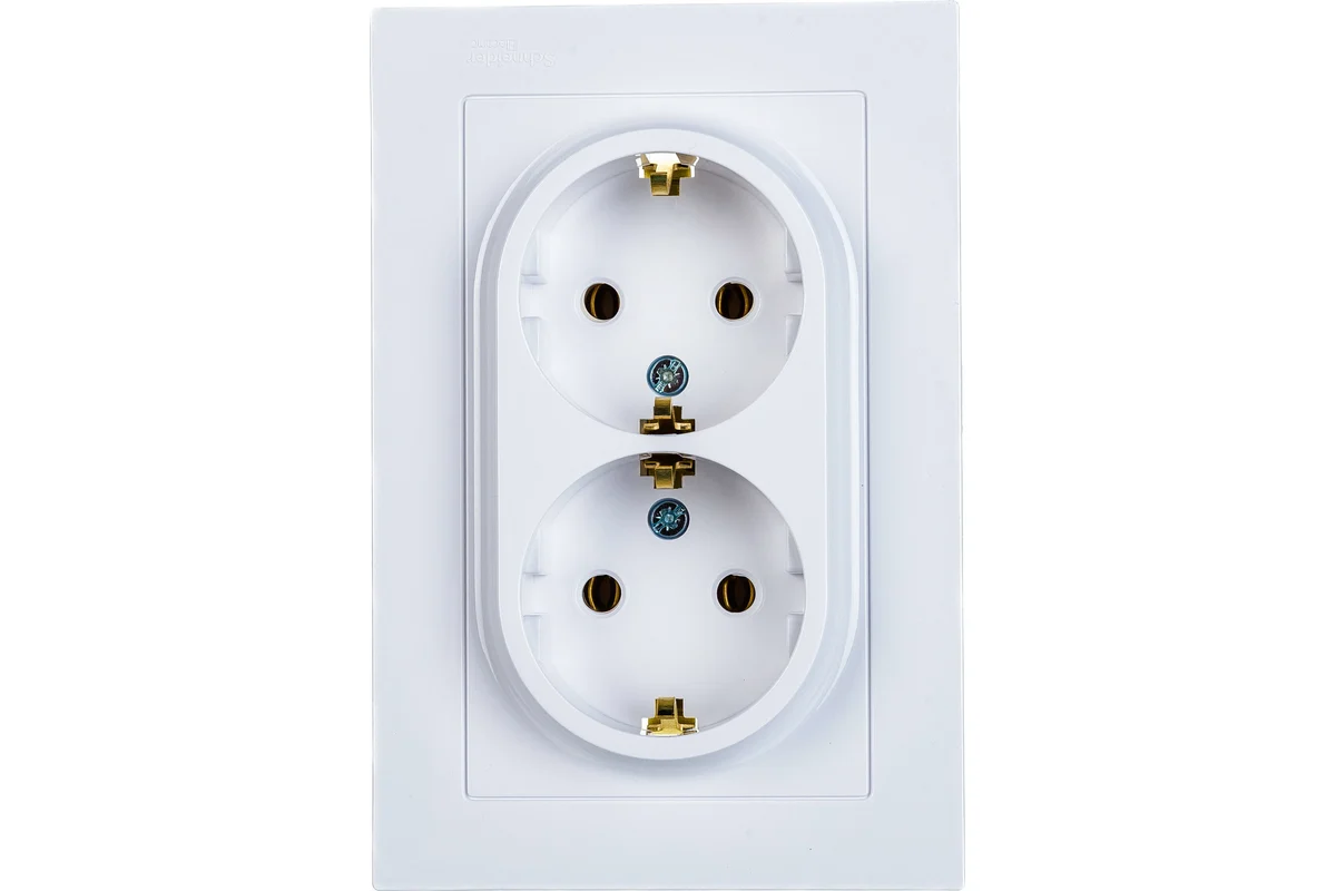 Розетка двойная AtlasDesign 16А, с заземлением, в сборе, без шторок, цвет белый