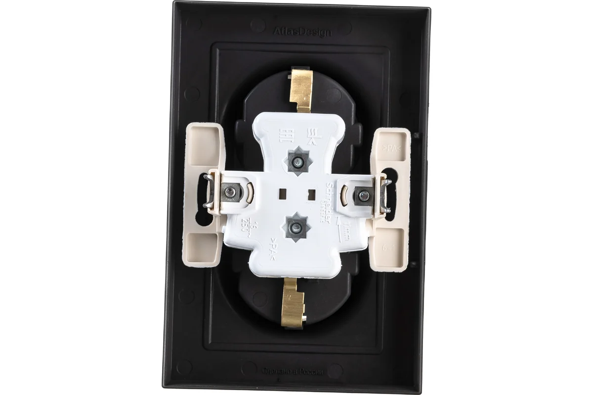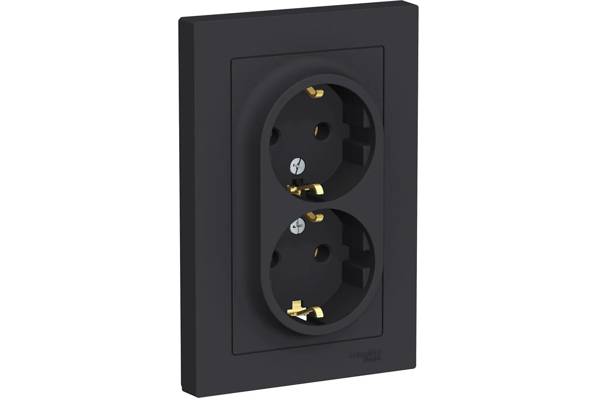 Розетка двойная AtlasDesign 16А, с заземлением, в сборе, цвет карбон
