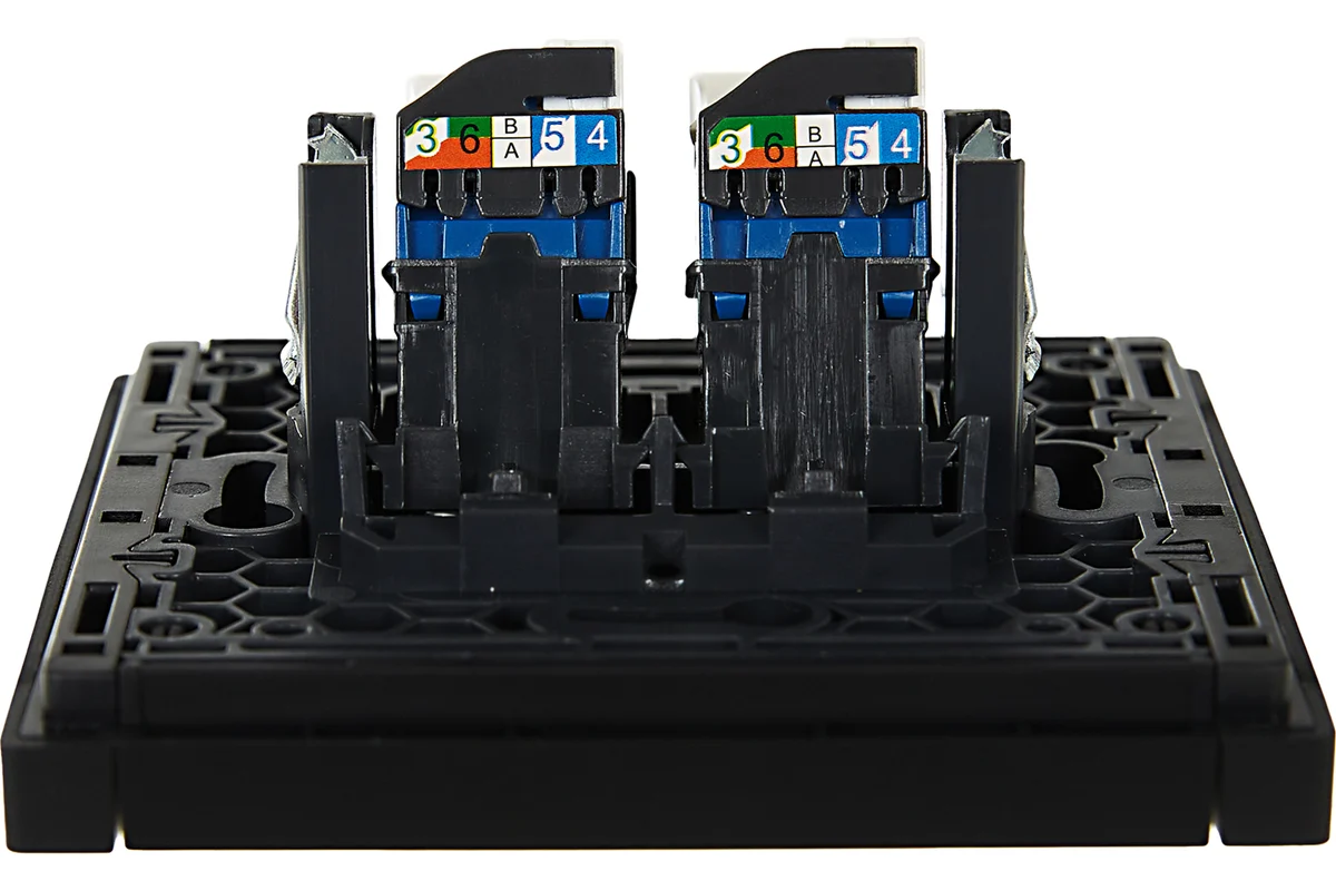 Двойная компьютерная розетка 2xRJ-45 Cat.6, серия FP134. Черный цвет. Повышенная производительность в двухпортовом исполнении.