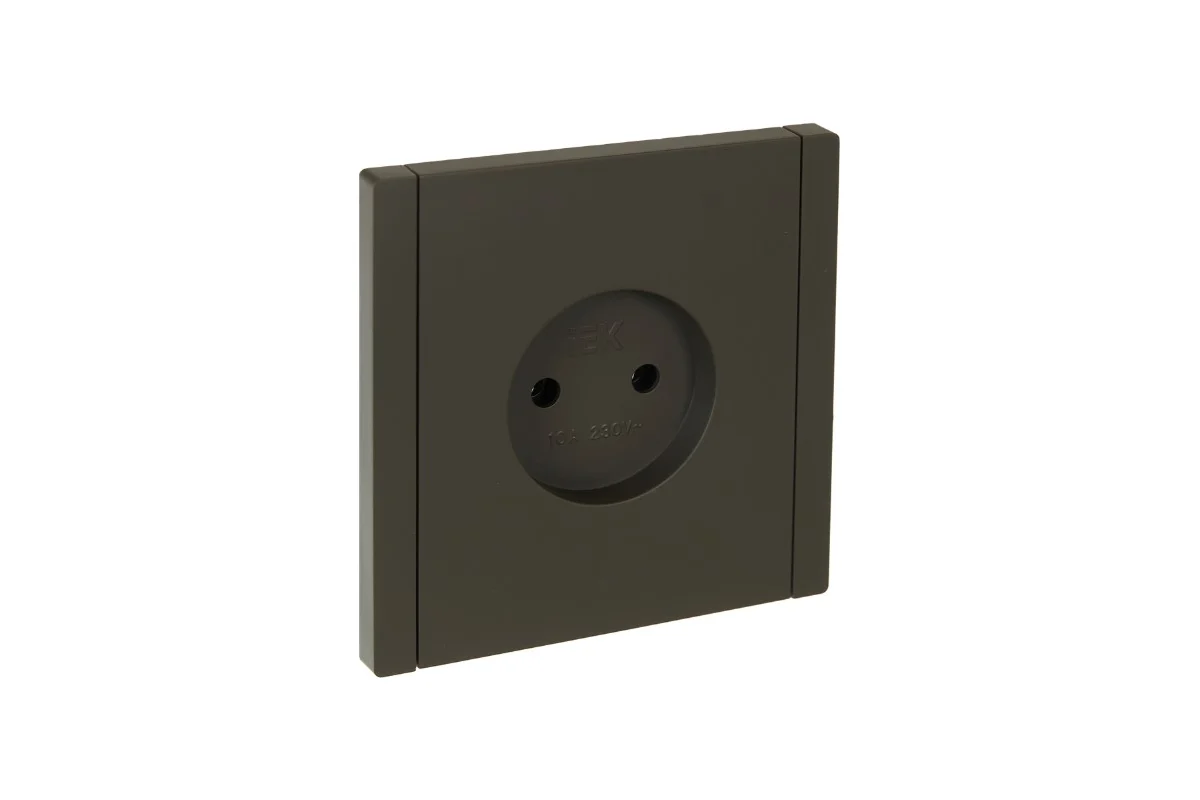 Одноместная электрическая розетка на 10А, без заземления, без защитных шторок, с винтовым креплением. Серия FP318. Серый цвет.
