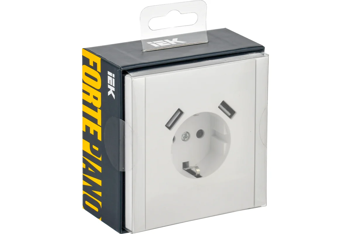 Розетка FORTEPIANO 16А с 2xUSB (Type A+A) 3.1А, с заземлением и шторками, цвет Белый (FP545)