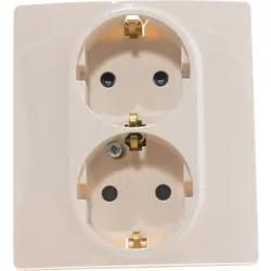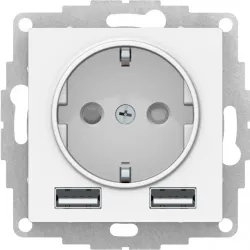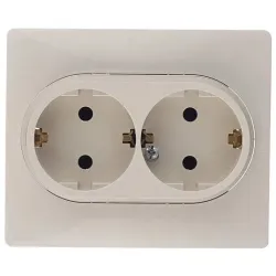 Двойная розетка Legrand Etika с заземлением и шторками 16А 250В, белого цвета