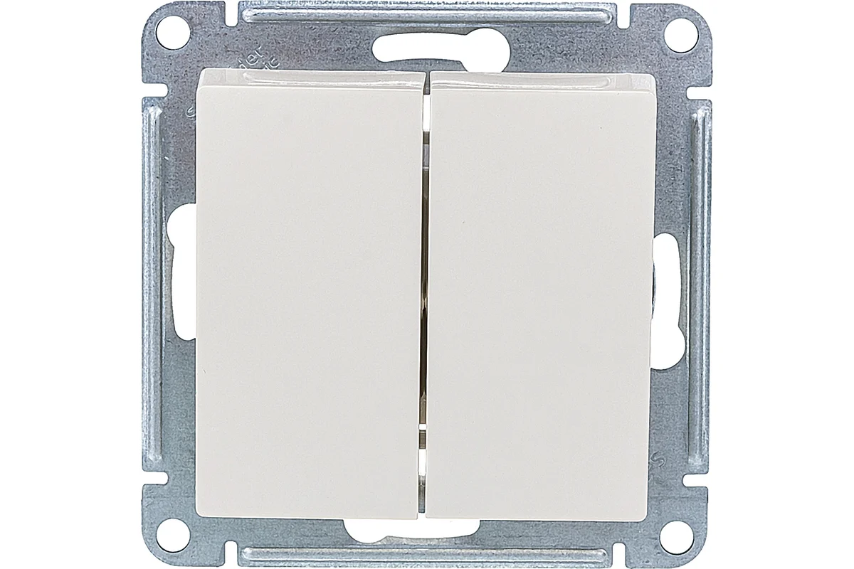 Выключатель двухклавишный AtlasDesign, схема 5, 10AX, механизм, цвет бежевый
