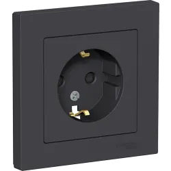Розетка с заземлением и крышкой в бронзовом цвете. Винтовые клеммы для надежного монтажа. Номинальный ток 16А. Сочетает в себе эстетику и практичность для помещений с повышенными требованиями к безопасности.